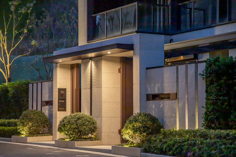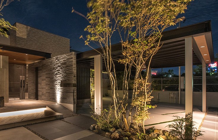 Không gian ngoại thất được tạo điểm nhấn bởi spotlight âm trần chống nước