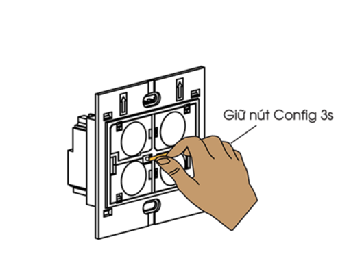 ➔ Nhấn giữ nút config trong khoảng 5s đến khi led nháy đỏ 2 lần thì nhả ra.