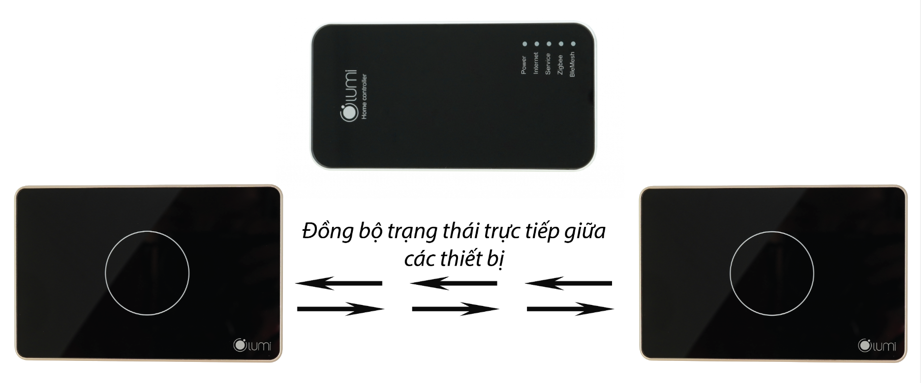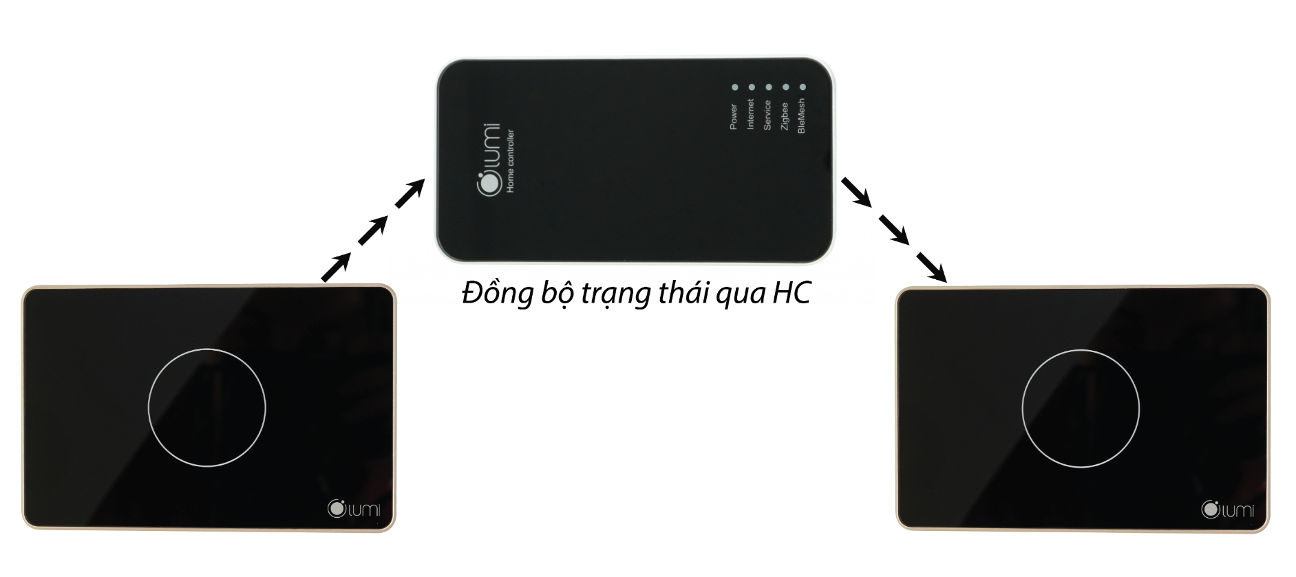 Ta có thể đồng bộ trạng thái của những nút cảm ứng thuộc công tắc đã được cho vào cùng chung một mạng Zigbee của HC/LC. (Tính năng nhóm Binding có thể hoạt động ngay cả khi không có HC).