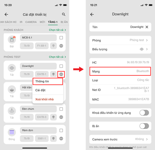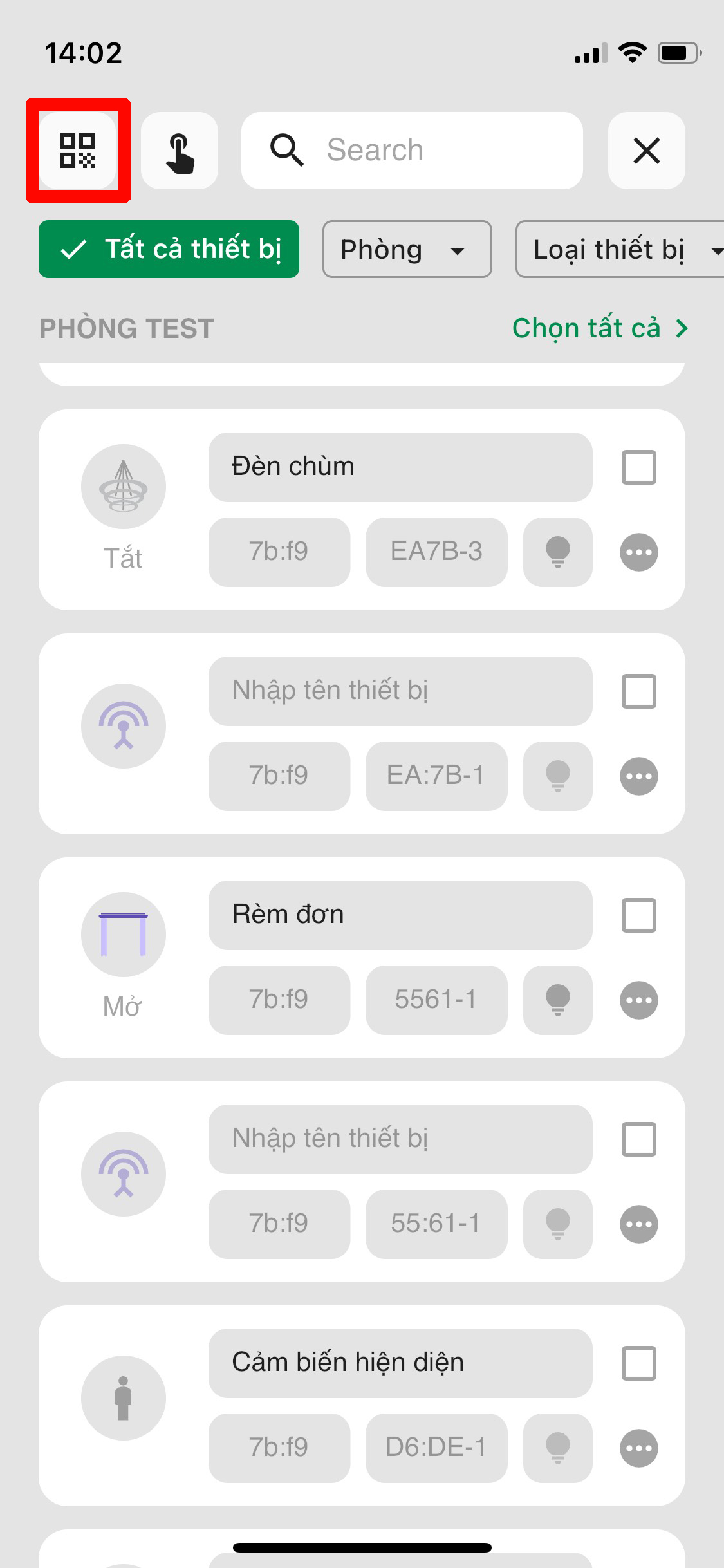 Tìm kiếm và cấu hình thiết bị nhanh trên App