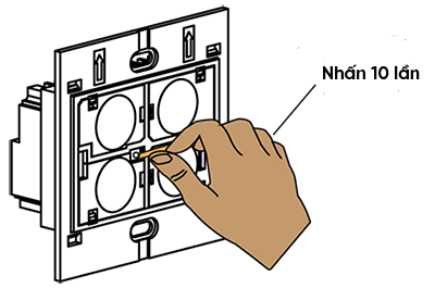 Thao tác trên chỉ để reset mạng, trong trường hợp cần reset toàn bộ cài đặt nâng cao trên công tắc (Độ sáng Led, chế độ cảm ứng,…) ta cần thực hiện như sau.