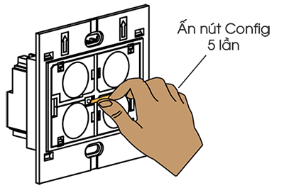 Để reset mạng thiết bị người dùng ấn nhanh nút Config 5 lần. Sau khi hoàn tất quá trình Reset đèn Led trên công tắc sẽ nháy hồng 3 lần.