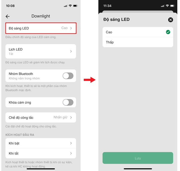 Cài đặt điều khiển trên ứng dụng Lumi Life+