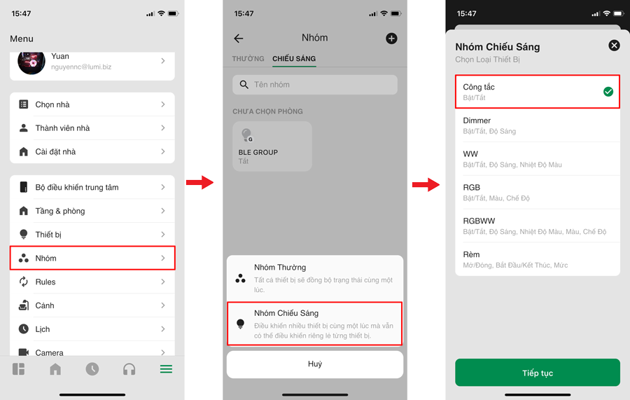 Ta còn có thể liên kết nút Lighting với nhóm đèn Smart Lighting thông qua tính năng Nhóm Lighting.
