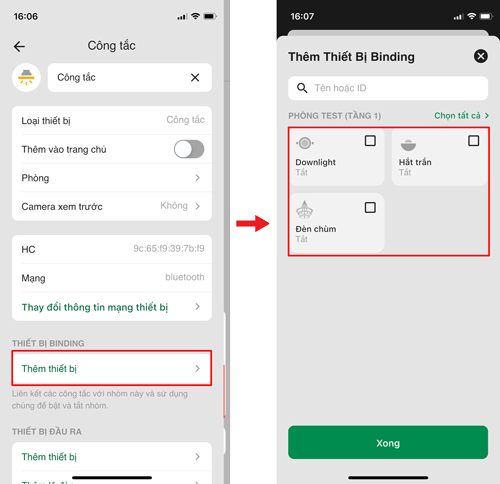 - Để có thể Binding, các công tắc phải được gia nhập vào cùng 1 mạng Bluetooth (Của HC hoặc LC).
