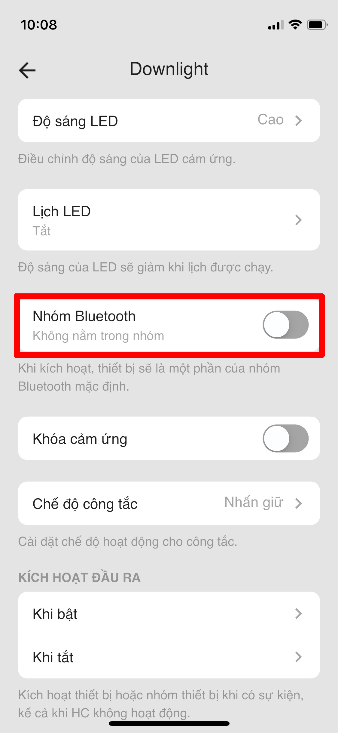 Khi bật tính năng này thì thiết bị sẽ được thêm vào nhóm BLE chung, các thiết bị Bluetooth Mesh trong nhà sẽ được đồng bộ bật/tắt theo.